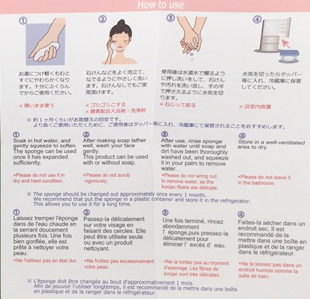 100% natural konjaku fiber - a vegetable fiber extracted from the plant Amorphophallus Konjaku. It's sustainably grown with no preservatives, no coloring and no additives. This earth-friendly vegetable sponge cleanses & moisturizes your skin while gently balancing the skin’s natural pH levels, restoring your skin back to its original and natural shine, for a healthier complexion. Just soak the dried sponge in water for a few moments until it's soft. Then - if you wish - add a dollop of your favorite facial cleanser and cleanse as you normally would (with the natural anti-bacterial benefit of bamboo charcoal, there's actually no need to use cleanser). To extend the life of your konjaku, please hang to air dry after every use. Konjaku, commonly called Konnyaku or Devil’s Tongue, is a perennial plant from southeast Asia. The dried plant contains glucomannan, a vegetable fiber (also called Mannan). Our version contains Binchotan charcoal, which is naturally anti-bacterial and anti-mildew. Imported directly from Japan especially for Heliotrope San Francisco.