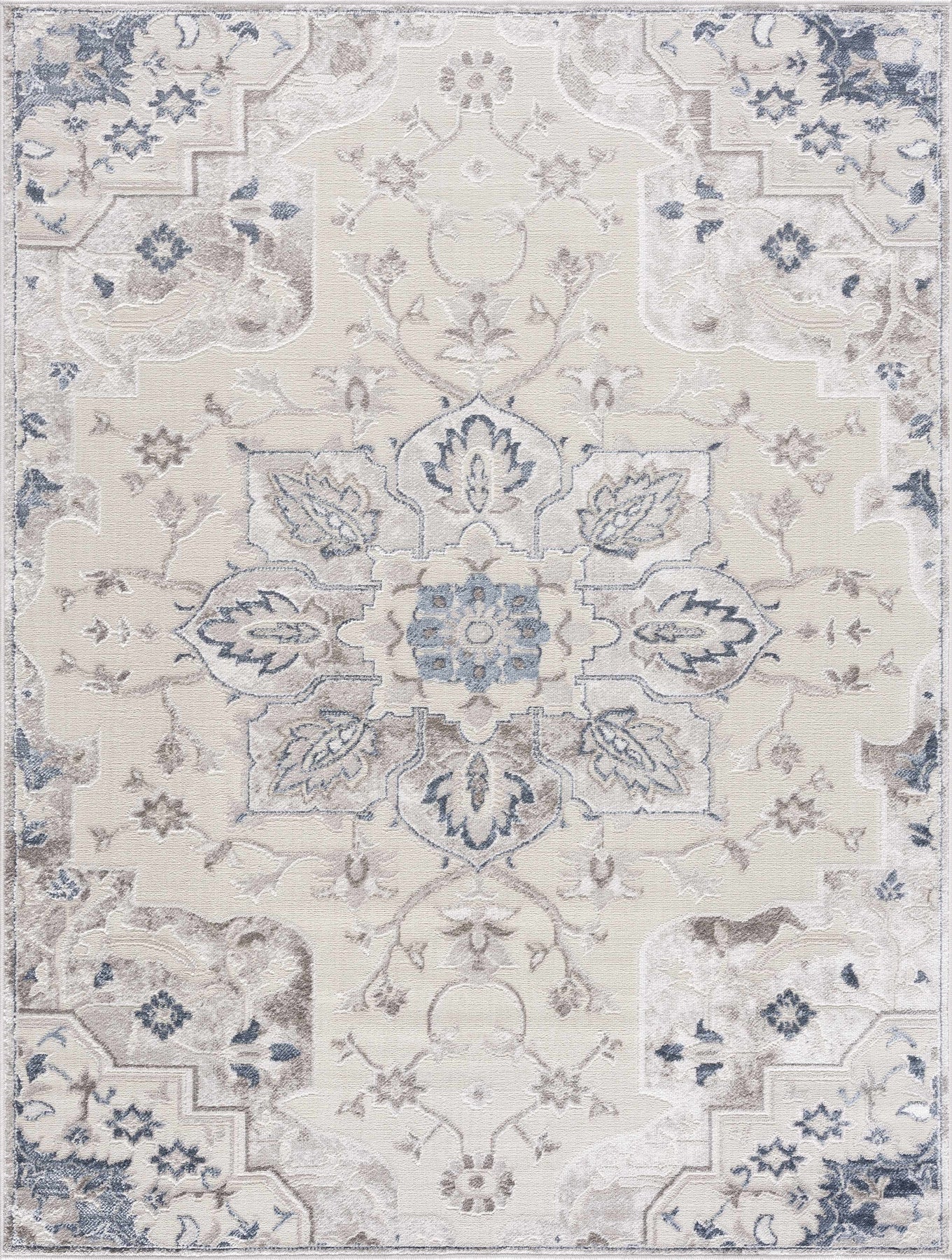 About: The Calum Blue & Gray Area Rug features a central medallion design surrounded by delicate floral patterns, creating an elegant focal point for any room. The soft blue and beige tones bring a serene and calming atmosphere, while the plush texture offers a soft feel underfoot, providing comfort in every step. Perfect for adding a touch of timeless beauty to living rooms, bedrooms, or hallways, this rug combines classic design with modern sensibility, making it a versatile addition to your home.