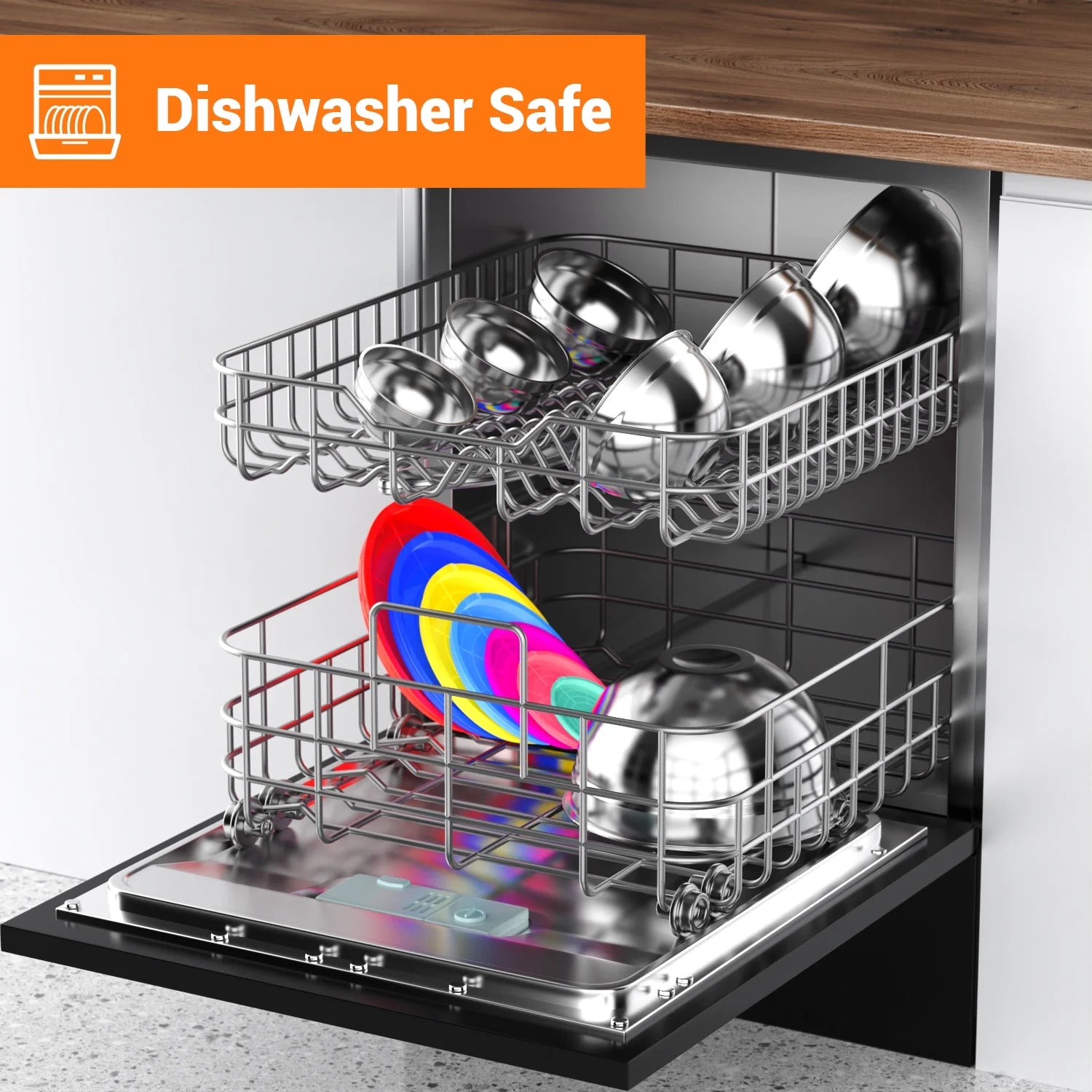 The TINANA mixing bowls set is a must-have for your kitchen! These high-quality stainless mixing bowls with lids set are rust-resistant and durable, making them perfect for all your food prep needs. Use them as stainless steel prep bowls, serving bowls, or storage bowls. These stainless steel bowls for mixing feature a mirror-finish interior and fingerprint-proof exterior, making them not only functional but stylish.